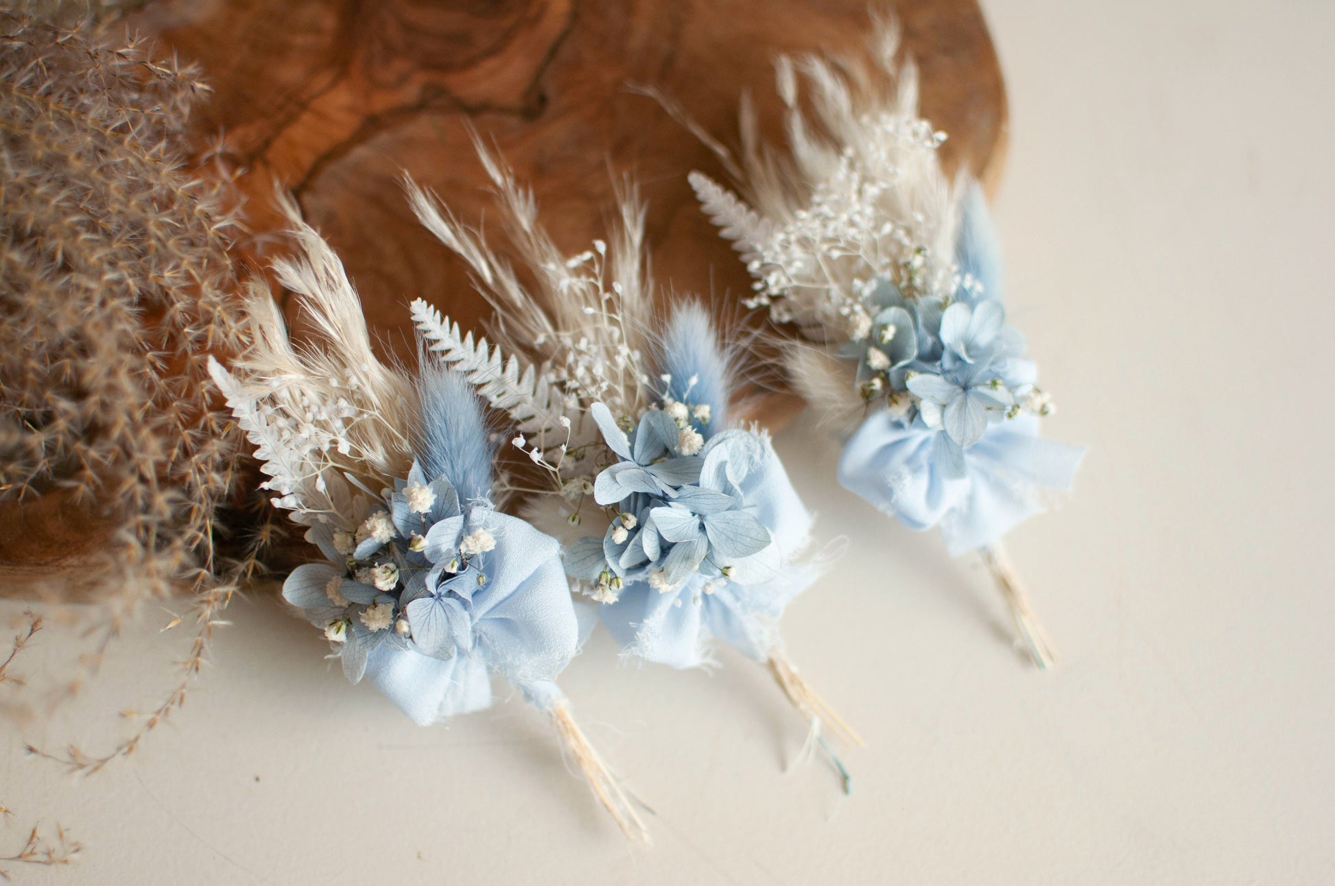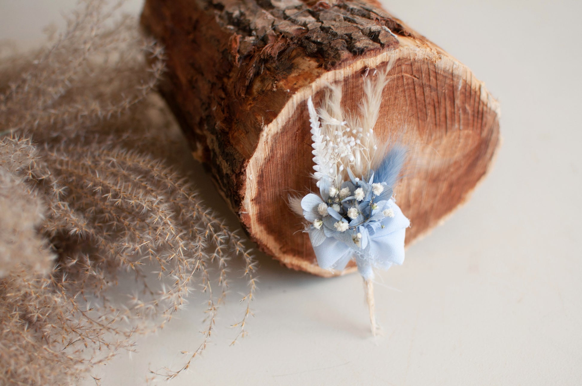 Combination of dried flowers tied with chiffon ribbon in beautiful blue colour ended with bow.