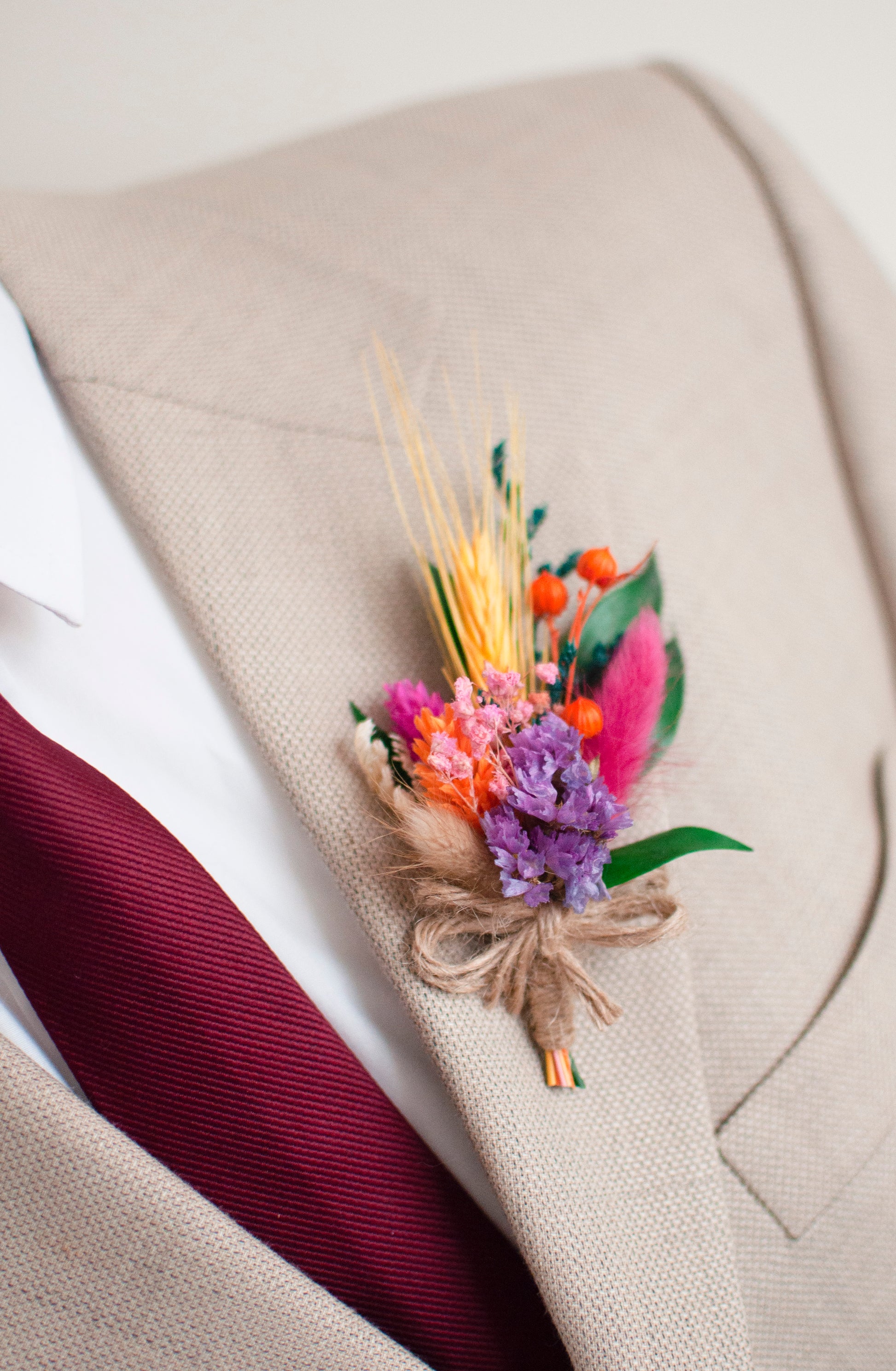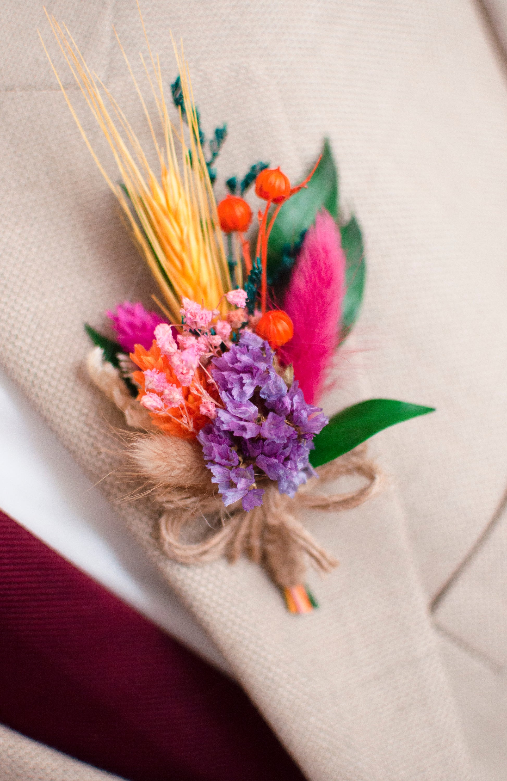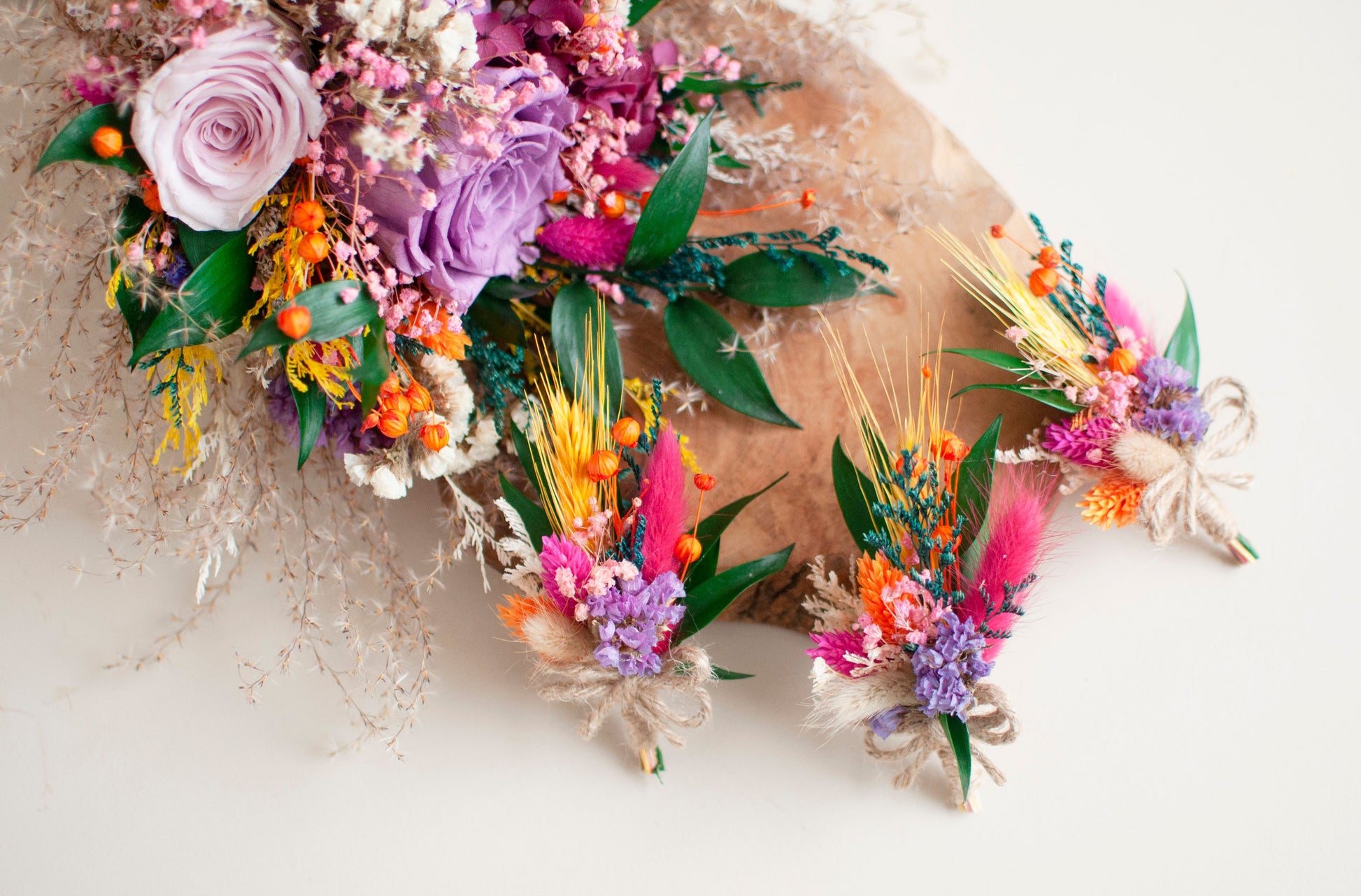 Combination of colourful dried flowers tied with natural jute twine ended with a bow.